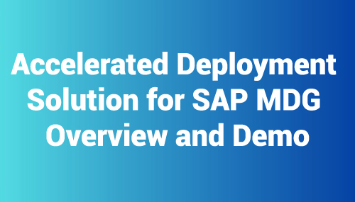 Accelerated Deployment Solution for SAP MDG Overview and Demo